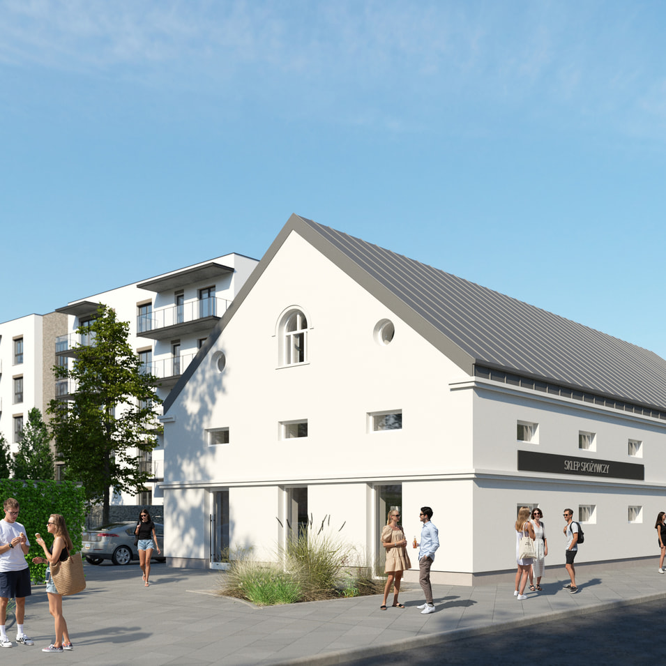 Mieszkańcy osiedla 7. Dzielnica w zrewitalizowanych budynkach znajdą lokale usługowo-handlowe, w których będą mogli zrobić szybkie zakupy i zrelaksować się przy kawie z widokiem na Park Garbolewskiego. Prace nad finalną koncepcją budynków prowadzone są pod okiem architektów w konsultacji z konserwatorem zabytków. Dzięki temu oba obiekty zyskają nowy blask.